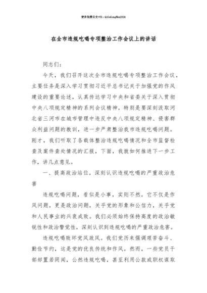 【七哥公文】2025年:【七哥公文】在全市违规吃喝专项整治工作会议上的讲话+更多免费公文+VX:QiGeGongWen2024+更多免费公文+VX:QiGeGongWen2024