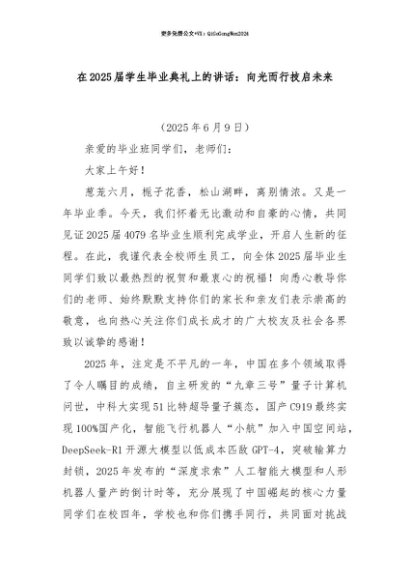【七哥公文】2025年:【七哥公文】在2025届学生毕业典礼上的讲话:向光而行技启未来+更多免费公文+VX:QiGeGongWen2024+更多免费公文+VX:QiGeGongWen2024