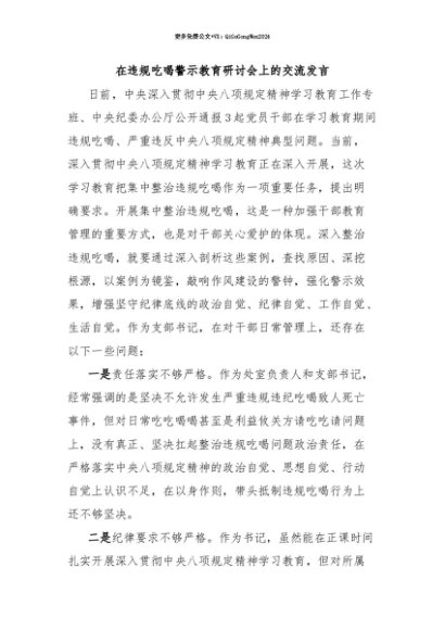 【七哥公文】2025年:【七哥公文】在违规吃喝警示教育研讨会上的交流发言+更多免费公文+VX:QiGeGongWen2024+更多免费公文+VX:QiGeGongWen2024