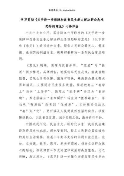 【七哥公文】2025年:【七哥公文】学习贯彻《关于进一步保障和改善民生着力解决群众急难愁盼的意见》心得体会+更多免费公文+VX:QiGeGongWen2024+更多免费公文+VX:QiGeGongWen2024