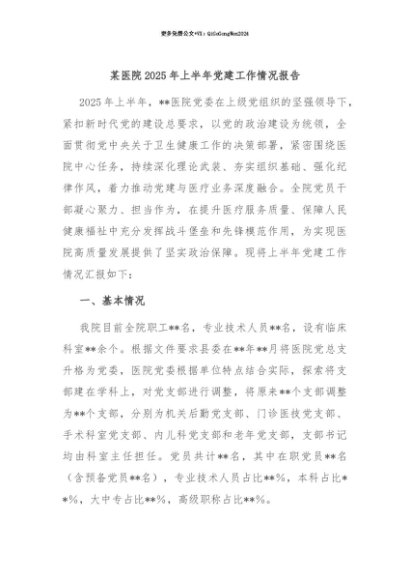 【七哥公文】2025年:【七哥公文】某医院2025年上半年党建工作情况报告+更多免费公文+VX:QiGeGongWen2024+更多免费公文+VX:QiGeGongWen2024
