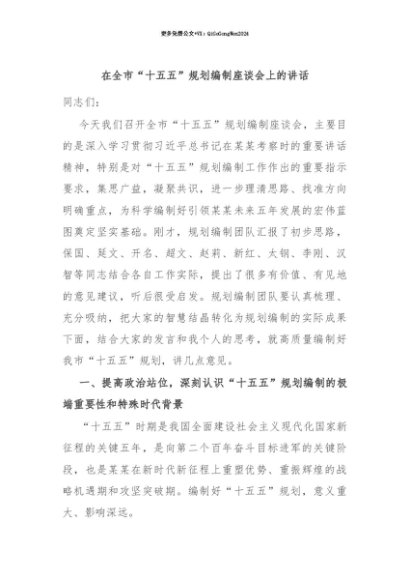 【七哥公文】2025年:【七哥公文】在全市“十五五”规划编制座谈会上的讲话+更多免费公文+VX:QiGeGongWen2024+更多免费公文+VX:QiGeGongWen2024