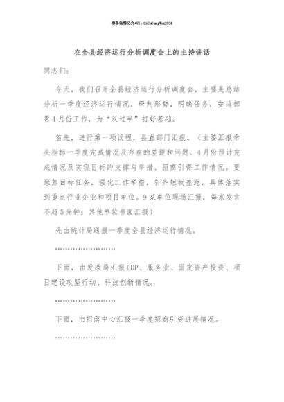 【七哥公文】2025年:【七哥公文】在全县经济运行分析调度会上的主持讲话+更多免费公文+VX:QiGeGongWen2024+更多免费公文+VX:QiGeGongWen2024