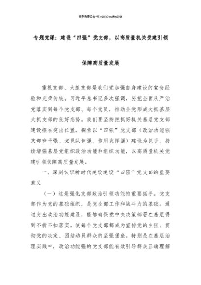【七哥公文】2025年:【七哥公文】专题党课:建设“四强”党支部,以高质量机关党建引领保障高质量发展+更多免费公文+VX:QiGeGongWen2024+更多免费公文+VX:QiGeGongWen2024