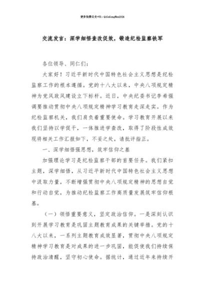 【七哥公文】2025年:【七哥公文】交流发言:深学细悟查改促效,锻造纪检监察铁军+更多免费公文+VX:QiGeGongWen2024+更多免费公文+VX:QiGeGongWen2024