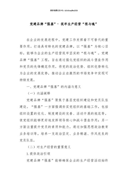 【七哥公文】2025年:【七哥公文】党建品牌“强基”・筑牢生产经营“根与魂”+更多免费公文+VX:QiGeGongWen2024+更多免费公文+VX:QiGeGongWen2024
