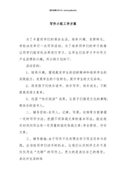 【七哥公文】2025年:【七哥公文】写作小组工作方案+更多免费公文+VX:QiGeGongWen2024+更多免费公文+VX:QiGeGongWen2024