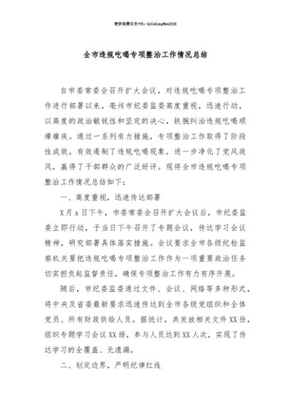 【七哥公文】2025年:【七哥公文】全市违规吃喝专项整治工作情况总结+更多免费公文+VX:QiGeGongWen2024+更多免费公文+VX:QiGeGongWen2024