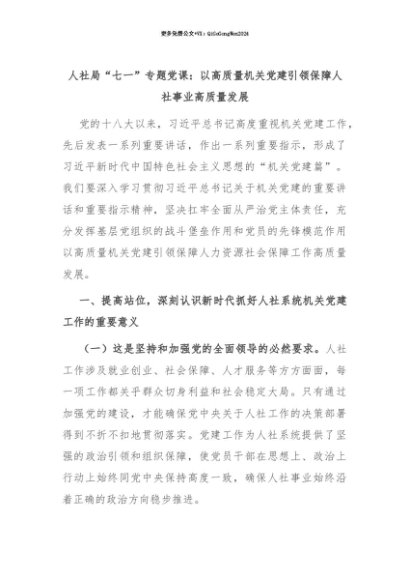 【七哥公文】2025年:【七哥公文】人社局“七一”专题党课:以高质量机关党建引领保障人社事业高质量发展+更多免费公文+VX:QiGeGongWen2024+更多免费公文+VX:QiGeGongWen2024
