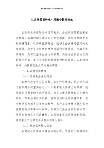 【七哥公文】2025年:【七哥公文】以品牌强根铸魂・用融合提质增效+更多免费公文+VX:QiGeGongWen2024+更多免费公文+VX:QiGeGongWen2024
