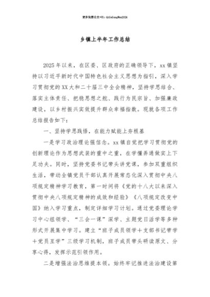 【七哥公文】2025年:【七哥公文】乡镇上半年工作总结+更多免费公文+VX:QiGeGongWen2024+更多免费公文+VX:QiGeGongWen2024