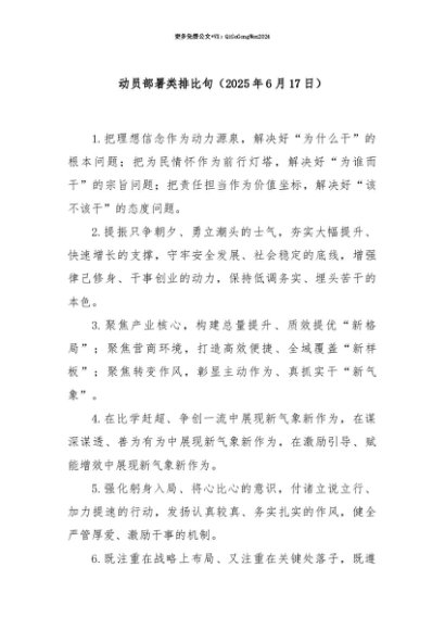 【七哥公文】2025年:【七哥公文】动员部署类排比句(2025年6月17日)+更多免费公文+VX:QiGeGongWen2024+更多免费公文+VX:QiGeGongWen2024