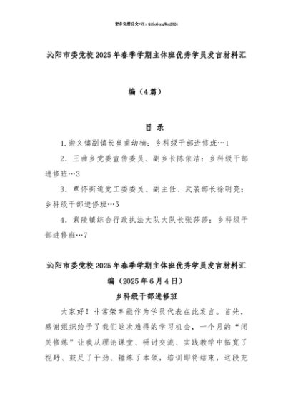 【七哥公文】2025年:【七哥公文】(4篇)沁阳市委党校2025年春季学期主体班优秀学员发言材料汇编+更多免费公文+VX:QiGeGongWen2024+更多免费公文+VX:QiGeGongWen2024