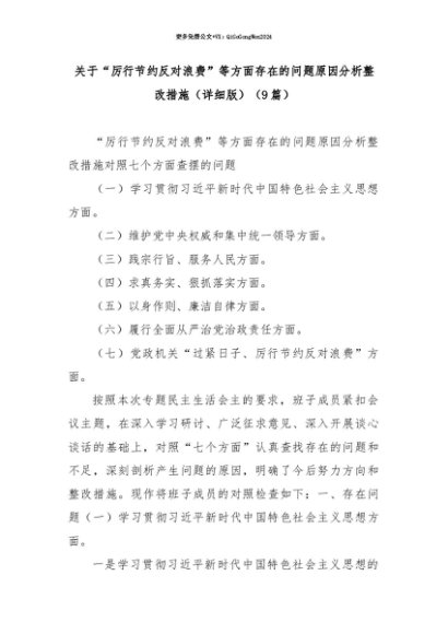 【七哥公文】2025年:【七哥公文】(9篇)关于“厉行节约反对浪费”等方面存在的问题原因分析整改措施(详细版)+更多免费公文+VX:QiGeGongWen2024+更多免费公文+VX:QiGeGongWen2024