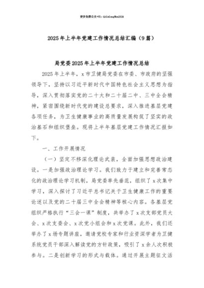 【七哥公文】2025年:【七哥公文】(9篇)2025年上半年党建工作情况总结汇编+更多免费公文+VX:QiGeGongWen2024+更多免费公文+VX:QiGeGongWen2024