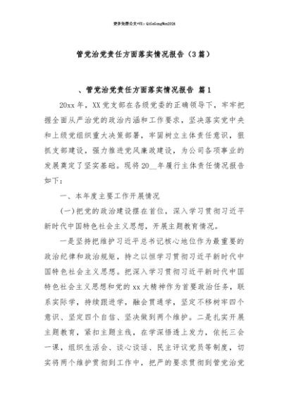 【七哥公文】2025年:【七哥公文】(3篇)管党治党责任方面落实情况报告+更多免费公文+VX:QiGeGongWen2024+更多免费公文+VX:QiGeGongWen2024