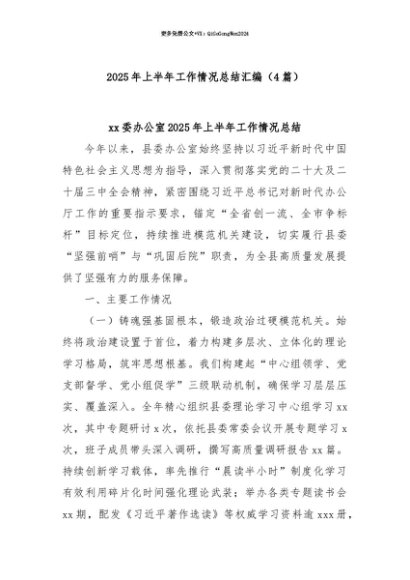 【七哥公文】2025年:【七哥公文】(4篇)2025年上半年工作情况总结汇编+更多免费公文+VX:QiGeGongWen2024+更多免费公文+VX:QiGeGongWen2024
