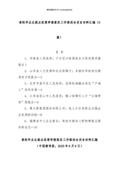 【七哥公文】2025年:【七哥公文】(6篇)高校毕业生就业政策举措落实工作推进会发言材料汇编+更多免费公文+VX:QiGeGongWen2024+更多免费公文+VX:QiGeGongWen2024
