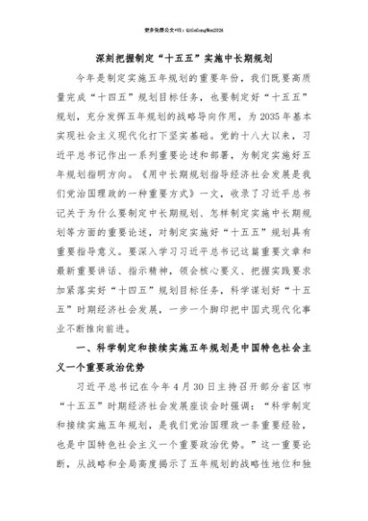 【七哥公文】2025年:【七哥公文】深刻把握制定“十五五”实施中长期规划+更多免费公文+VX:QiGeGongWen2024+更多免费公文+VX:QiGeGongWen2024