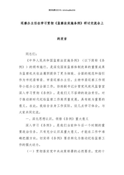【七哥公文】2025年:【七哥公文】巡察办主任在学习贯彻《监察法实施条例》研讨交流会上的发言+更多免费公文+VX:QiGeGongWen2024+更多免费公文+VX:QiGeGongWen2024