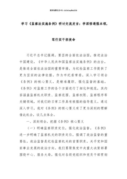 【七哥公文】2025年:【七哥公文】学习《监察法实施条例》研讨交流发言:学深悟透强本领,笃行实干担使命+更多免费公文+VX:QiGeGongWen2024+更多免费公文+VX:QiGeGongWen2024
