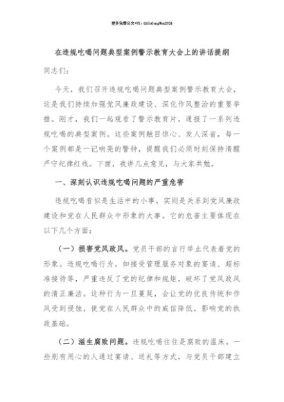 【七哥公文】2025年:【七哥公文】在违规吃喝问题典型案例警示教育大会上的讲话提纲+更多免费公文+VX:QiGeGongWen2024+更多免费公文+VX:QiGeGongWen2024