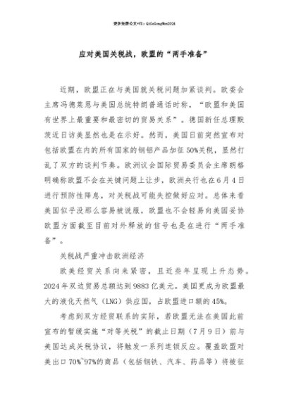 【七哥公文】2025年:【七哥公文】应对美国关税战,欧盟的“两手准备”+更多免费公文+VX:QiGeGongWen2024+更多免费公文+VX:QiGeGongWen2024