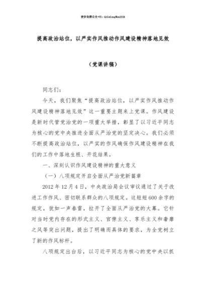 【七哥公文】2025年:【七哥公文】提高政治站位,以严实作风推动作风建设精神落地见效(党课讲稿)+更多免费公文+VX:QiGeGongWen2024+更多免费公文+VX:QiGeGongWen2024