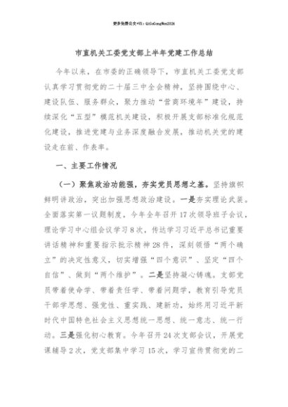 【七哥公文】2025年:【七哥公文】市直机关工委党支部上半年党建工作总结+更多免费公文+VX:QiGeGongWen2024+更多免费公文+VX:QiGeGongWen2024