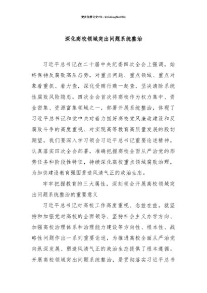 【七哥公文】2025年:【七哥公文】深化高校领域突出问题系统整治+更多免费公文+VX:QiGeGongWen2024+更多免费公文+VX:QiGeGongWen2024