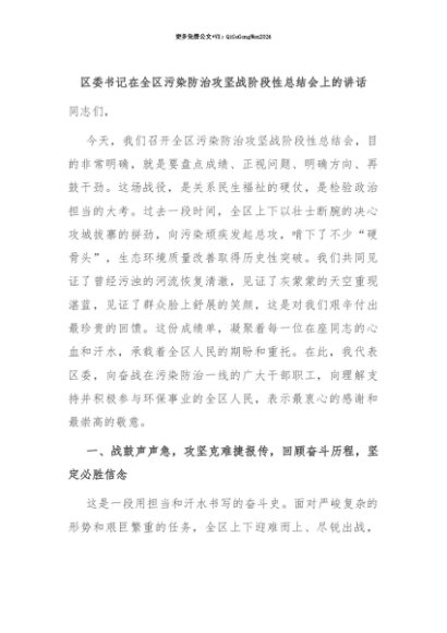 【七哥公文】2025年:【七哥公文】区委书记在全区污染防治攻坚战阶段性总结会上的讲话+更多免费公文+VX:QiGeGongWen2024+更多免费公文+VX:QiGeGongWen2024