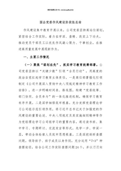【七哥公文】2025年:【七哥公文】国企党委作风建设阶段性总结+更多免费公文+VX:QiGeGongWen2024+更多免费公文+VX:QiGeGongWen2024