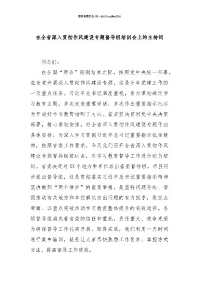 【七哥公文】2025年:【七哥公文】在全省深入贯彻作风建设专题督导组培训会上的主持词+更多免费公文+VX:QiGeGongWen2024+更多免费公文+VX:QiGeGongWen2024