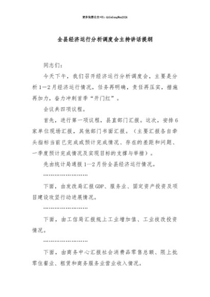 【七哥公文】2025年:【七哥公文】全县经济运行分析调度会主持讲话提纲+更多免费公文+VX:QiGeGongWen2024+更多免费公文+VX:QiGeGongWen2024