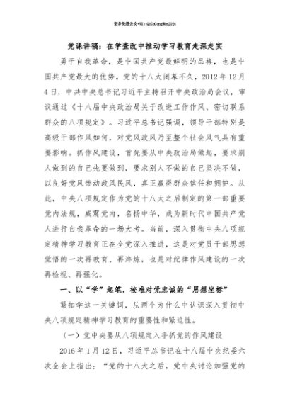 【七哥公文】2025年:【七哥公文】党课讲稿:在学查改中推动学习教育走深走实+更多免费公文+VX:QiGeGongWen2024+更多免费公文+VX:QiGeGongWen2024
