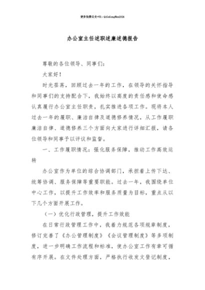 【七哥公文】2025年:【七哥公文】办公室主任述职述廉述德报告+更多免费公文+VX:QiGeGongWen2024+更多免费公文+VX:QiGeGongWen2024