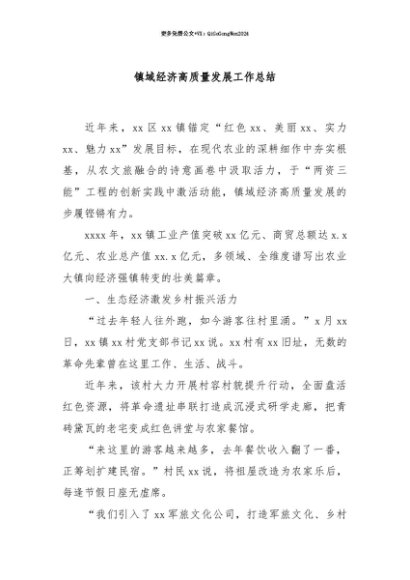 【七哥公文】2025年:【七哥公文】镇域经济高质量发展工作总结+更多免费公文+VX:QiGeGongWen2024+更多免费公文+VX:QiGeGongWen2024