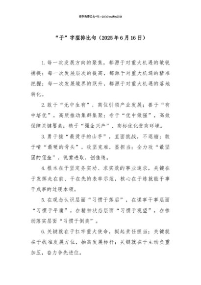 【七哥公文】2025年:【七哥公文】“于”字型排比句(2025年6月16日)+更多免费公文+VX:QiGeGongWen2024+更多免费公文+VX:QiGeGongWen2024