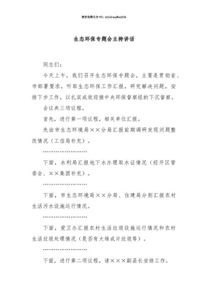 【七哥公文】2025年:【七哥公文】生态环保专题会主持讲话+更多免费公文+VX:QiGeGongWen2024+更多免费公文+VX:QiGeGongWen2024