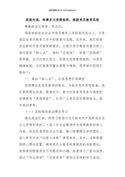 【七哥公文】2025年:【七哥公文】经验交流:构建多元党课矩阵,赋能党员教育实效+更多免费公文+VX:QiGeGongWen2024+更多免费公文+VX:QiGeGongWen2024