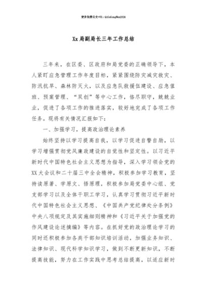 【七哥公文】2025年:【七哥公文】Xx局副局长三年工作总结+更多免费公文+VX:QiGeGongWen2024+更多免费公文+VX:QiGeGongWen2024