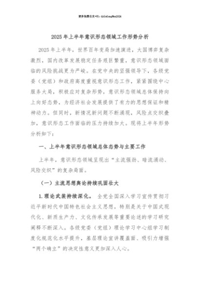 【七哥公文】2025年:【七哥公文】2025年上半年意识形态领域工作形势分析+更多免费公文+VX:QiGeGongWen2024+更多免费公文+VX:QiGeGongWen2024