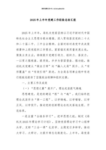 【七哥公文】2025年:【七哥公文】2025年上半年党建工作经验总结汇报+更多免费公文+VX:QiGeGongWen2024+更多免费公文+VX:QiGeGongWen2024