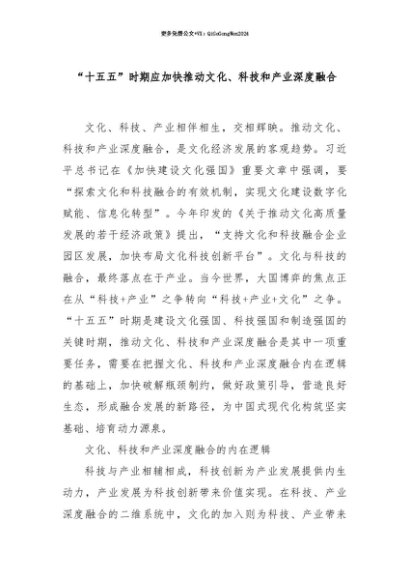 【七哥公文】2025年:【七哥公文】“十五五”时期应加快推动文化、科技和产业深度融合+更多免费公文+VX:QiGeGongWen2024+更多免费公文+VX:QiGeGongWen2024