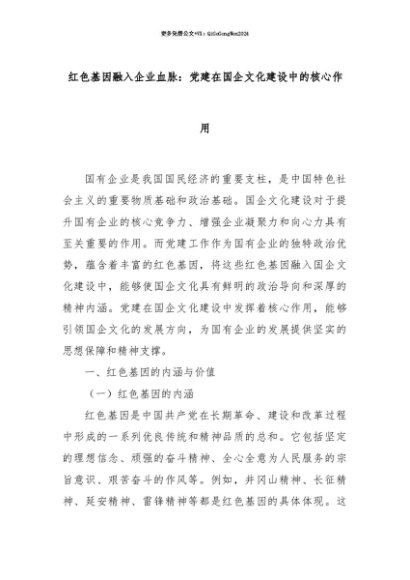 【七哥公文】2025年:【七哥公文】红色基因融入企业血脉:党建在国企文化建设中的核心作用+更多免费公文+VX:QiGeGongWen2024+更多免费公文+VX:QiGeGongWen2024