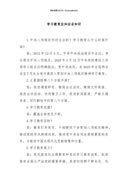 【七哥公文】2025年:【七哥公文】学习教育应知应会知识+更多免费公文+VX:QiGeGongWen2024+更多免费公文+VX:QiGeGongWen2024