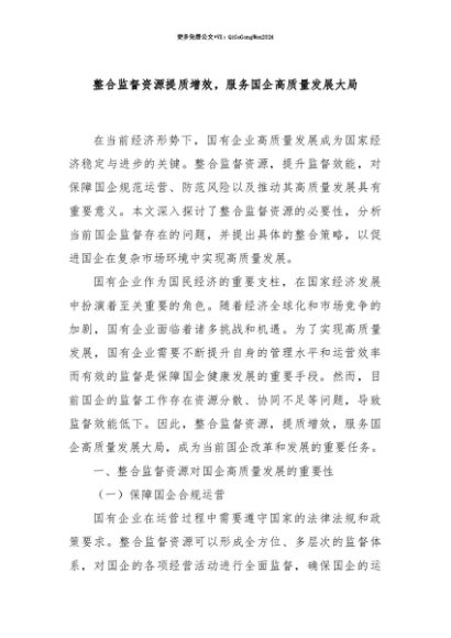 【七哥公文】2025年:【七哥公文】整合监督资源提质增效,服务国企高质量发展大局+更多免费公文+VX:QiGeGongWen2024+更多免费公文+VX:QiGeGongWen2024