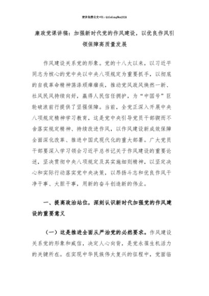 【七哥公文】2025年:【七哥公文】廉政党课讲稿:加强新时代党的作风建设,以优良作风引领保障高质量发展+更多免费公文+VX:QiGeGongWen2024+更多免费公文+VX:QiGeGongWen2024