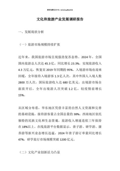 【七哥公文】2025年:【七哥公文】文化和旅游产业发展调研报告+更多免费公文+VX:QiGeGongWen2024+更多免费公文+VX:QiGeGongWen2024