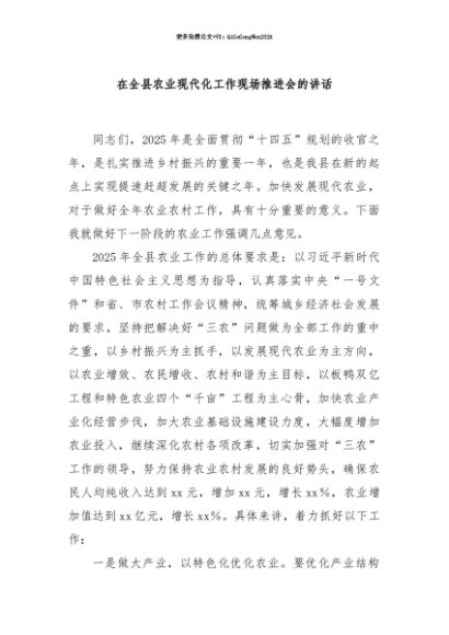 【七哥公文】2025年:【七哥公文】在全县农业现代化工作现场推进会的讲话+更多免费公文+VX:QiGeGongWen2024+更多免费公文+VX:QiGeGongWen2024